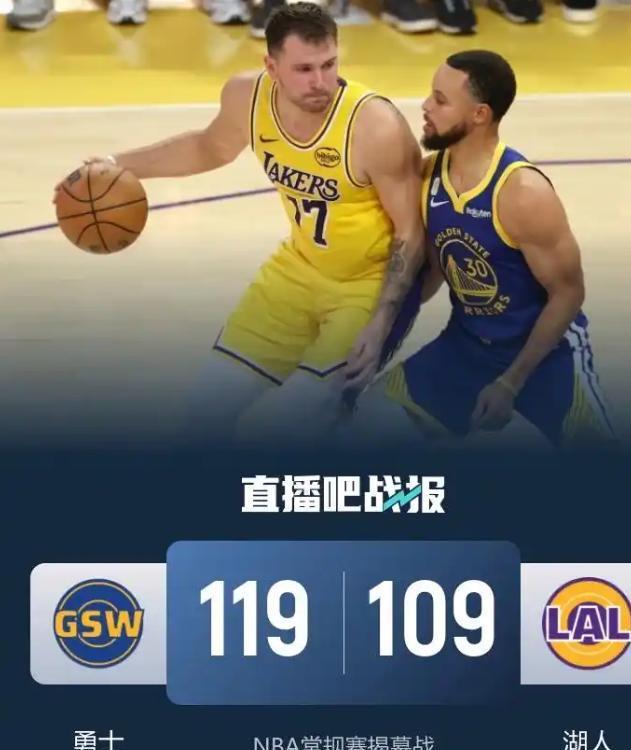 而另一边的勇士也紧跟其后,119-109。